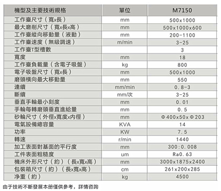 1、本機(jī)床屬于重切削磨床,適用于機(jī)械制造、模具等行業(yè)的平面磨削。可磨削鋼件、鑄件及有色金屬等材料。工件可直接固定在工作臺(tái)面上或放在電磁吸盤(pán)上磨削。